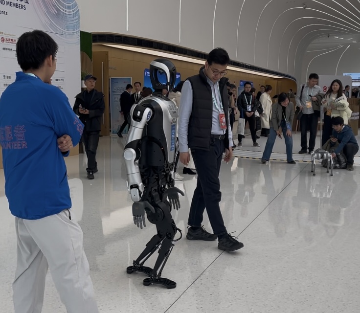 连日来,类似场景在2025中关村论坛年会上随处可见,“机器人店员”递上现磨咖啡,“机器人书法家”挥毫泼墨,机器人进行群舞表演……近百台人形机器人携手“上岗”,活跃在迎宾、交流、主持、表演等场景,向与会嘉宾提供服务。年会现场如同一个大型的机器人工作现场。