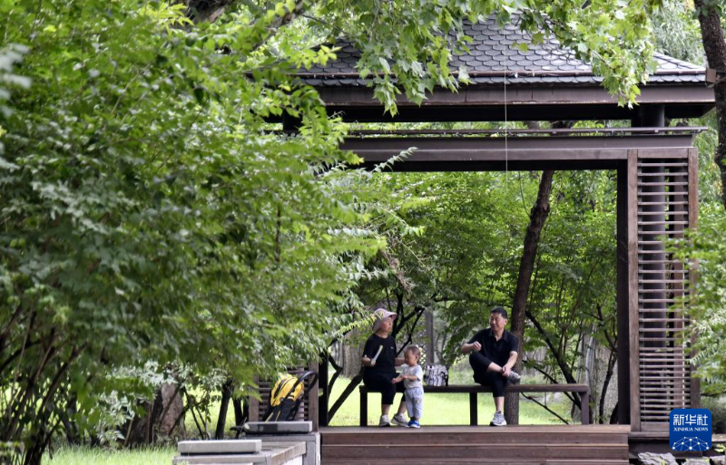 8月16日,市民在北京市通州区大运河沿岸的公园内休闲。