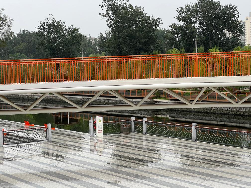 图为坝河上新改建的人行跨河桥(记者宋依黛)