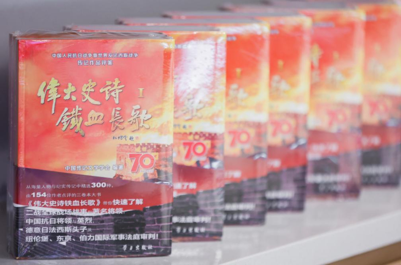 中国传记文学学会编著的《伟大史诗 铁血长歌——中国人民抗日战争暨世界反法西斯战争传记作品评鉴》(全三册)已由学习出版社出版,该书汇集了154位传记文学评论者对全球300种传记文学作品的点评,帮助读者了解中国人民抗日战争暨世界反法西斯战争中艰苦卓绝、浴血奋战的英雄人物。