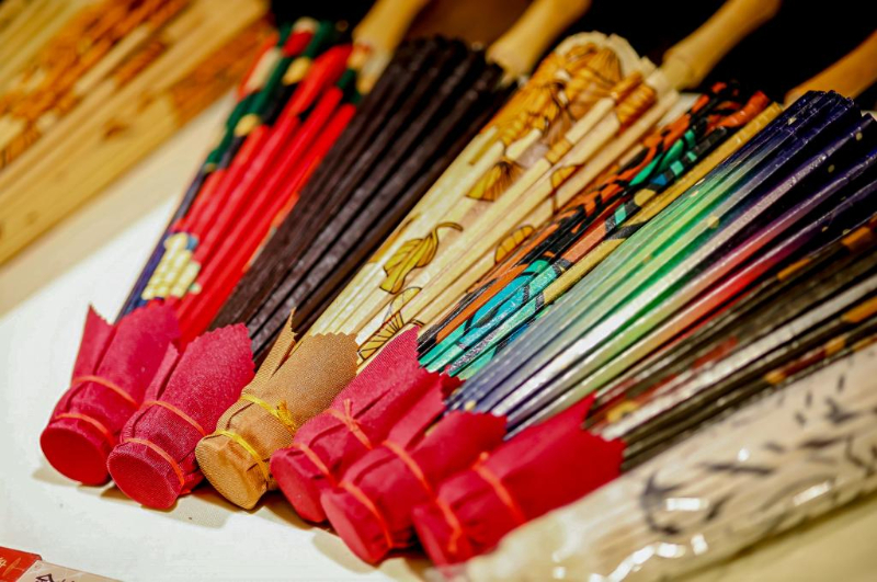 2025年“非遗进度假区”——“长城脚下见非遗”主题活动上展示的非遗纸伞。(北京市密云区供图)