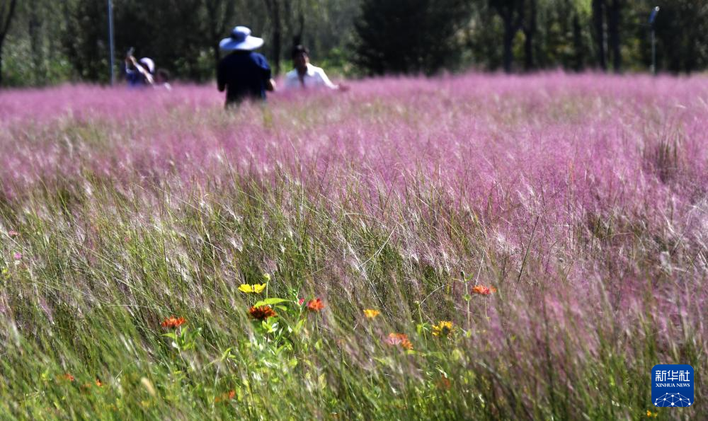 9月24日,市民在顺义区后沙峪镇的温榆河公园内休闲赏花。