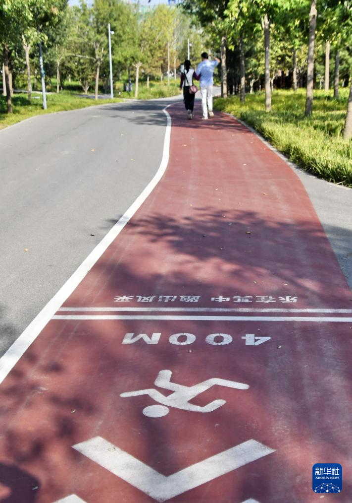 9月24日,顺义区后沙峪镇温榆河公园内铺设的运动步道。