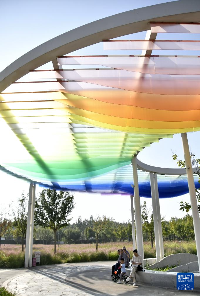 9月24日,市民在顺义区后沙峪镇的温榆河公园内休闲游览。