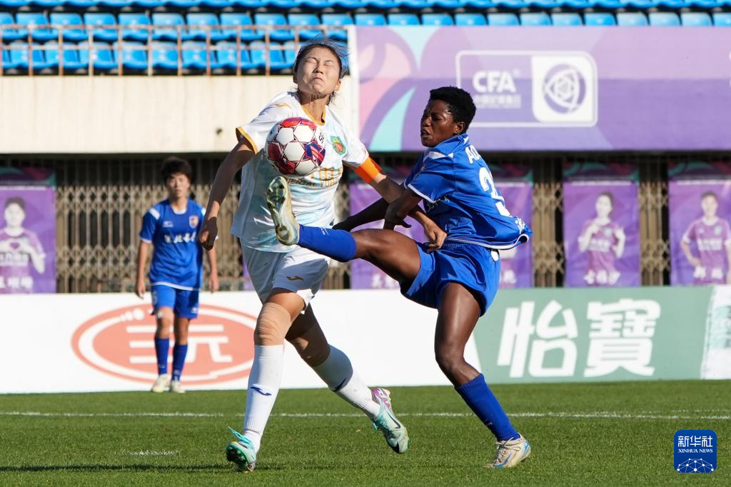 9月28日,辽宁沈阳沈北禾丰队球员内奥米·阿黛尔·卡布雷(右)在比赛中进攻。