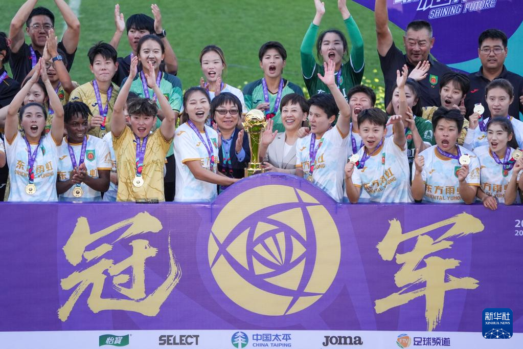 当日,在2025中国足球协会女子超级联赛第22轮比赛中,北京东方雨虹队主场4比0战胜辽宁沈阳沈北禾丰队,以41分位列积分榜第一,夺得联赛冠军。