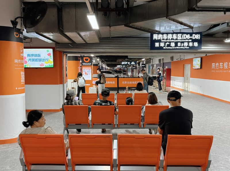 旅客在北京西站网约车候车区休息等待(北京市重点站区管委会供图)