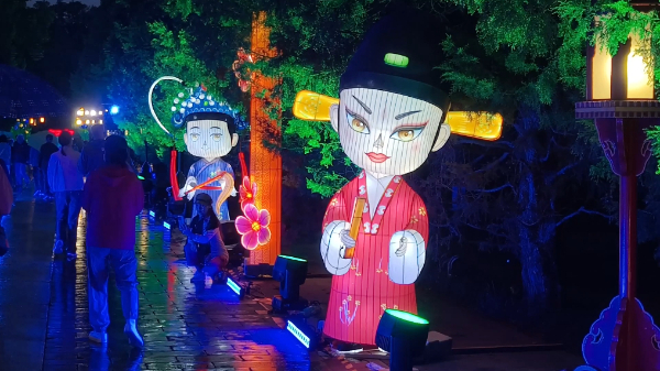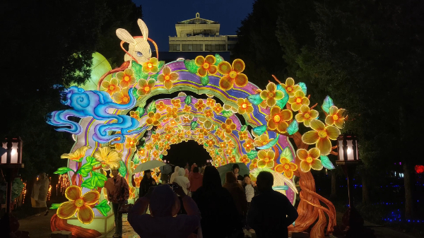 活动通过多组围绕玉兔、月亮等传统文化意象,和火箭、太空服等科技元素的灯光造型,为市民游客营造出传统与现代交织,文化与科技融合的沉浸式中秋光影体验。