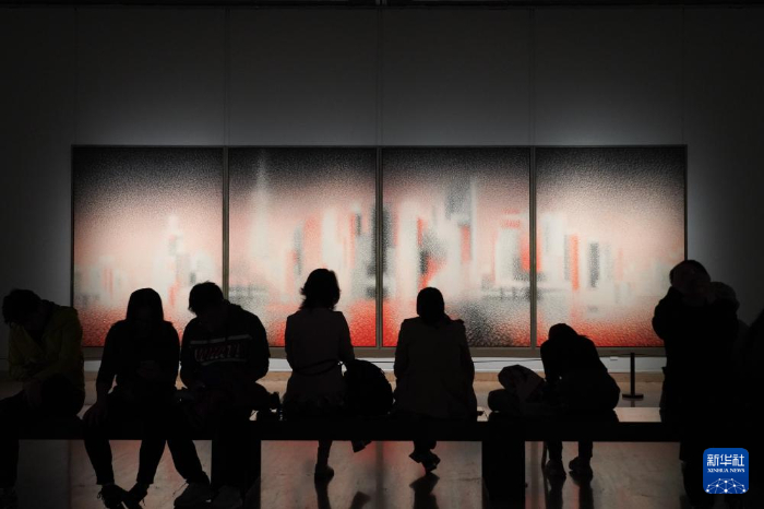 10月8日,观众在中国美术馆驻足观赏。新华社记者 陈钟昊 摄