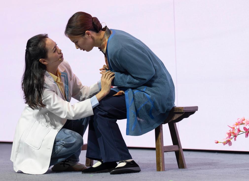 10月10日,在中国残联举办的2025年世界精神卫生日主题宣传活动上,演员表演心理音乐剧《花开河西巷》。