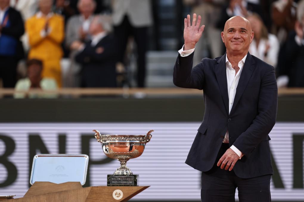 6月8日,网球名宿阿加西在2025法国网球公开赛男单决赛颁奖仪式上。新华社记者 李京 摄