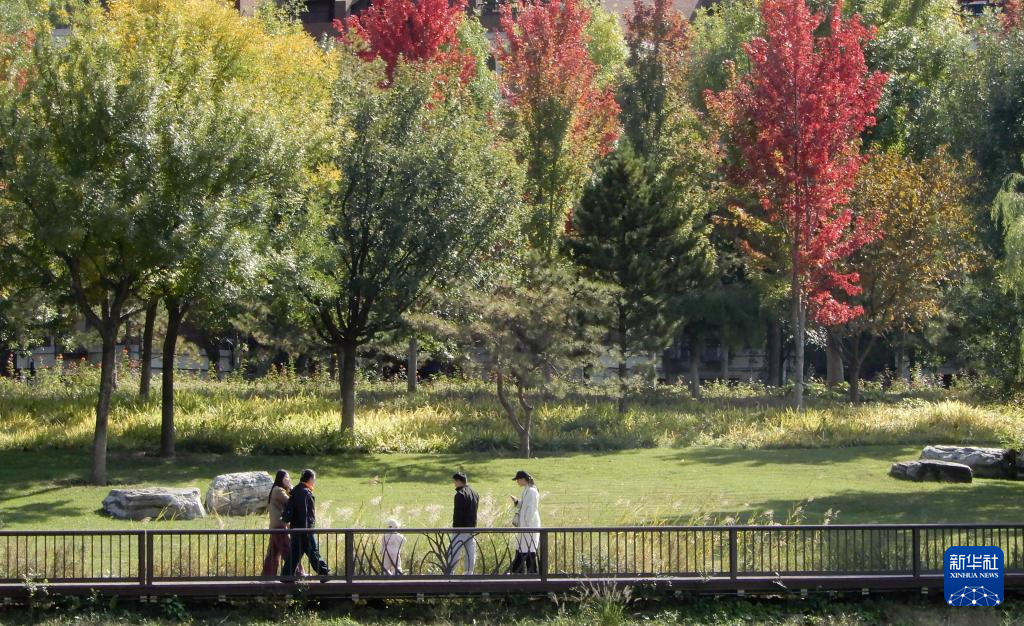 10月18日,市民穿上厚衣服在通州区北运河畔散步。