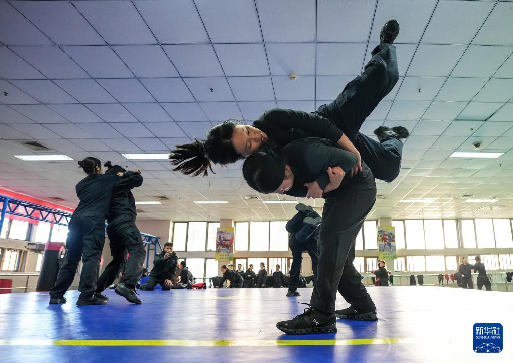 10月23日,参训女刑警在进行抓捕格斗训练。