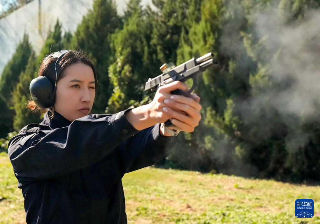 10月20日,参训女刑警在进行“手枪精度射击”训练。
