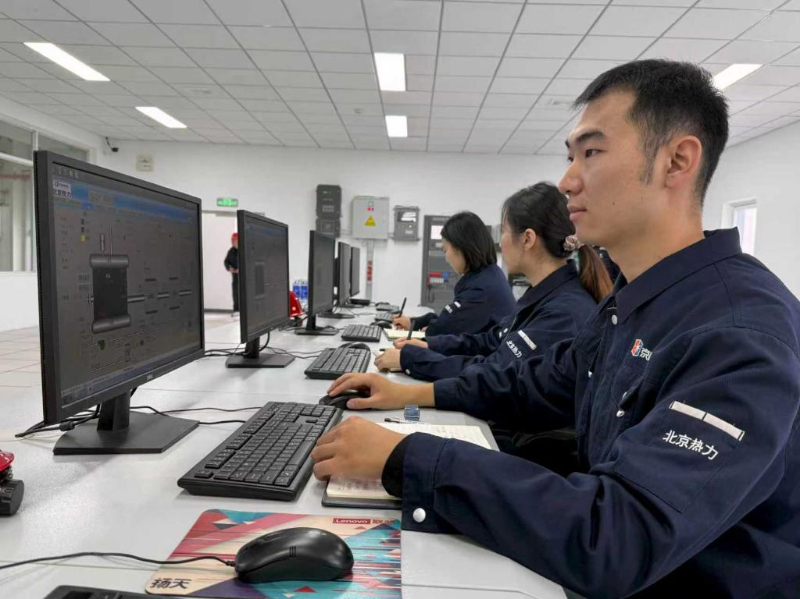 在北京市石景山区鲁谷北重尖峰热源厂监控室内,工作人员正查看设备运行参数。新华社记者田晨旭摄