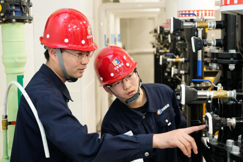 11月7日,在京能集团北京热力海淀分公司上河村C区锅炉房,工作人员检查、记录设备运行情况。新华社记者 谢晗 摄