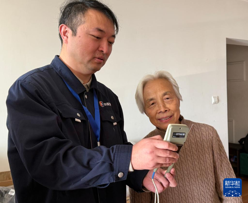 11月15日,京能集团所属北京热力朝二分公司供热服务管家为居民入户测温。新华社记者 田晨旭 摄