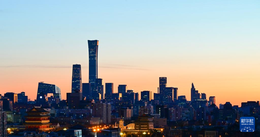 11月27日,北京迎来通透澄澈的晴天。晨曦中,城市天际线被晕染出层次丰富的渐变色彩。