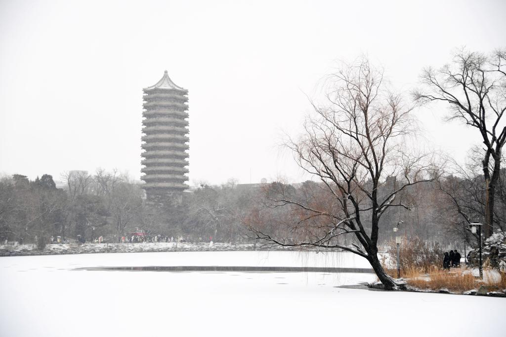 12月12日在北京大学拍摄的雪景。