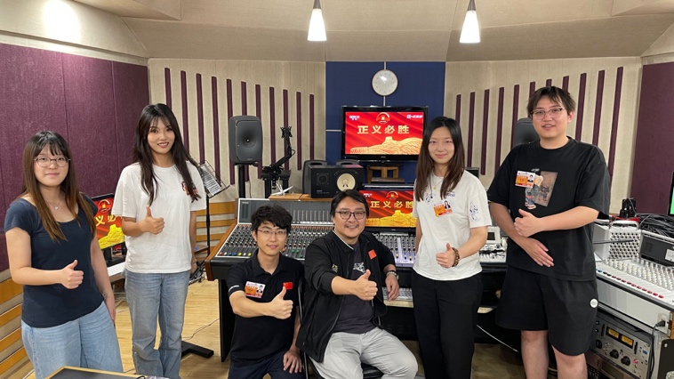 图为中传师生团队在录音棚为《正义必胜》文艺晚会进行录音工作(中国传媒大学供图)
