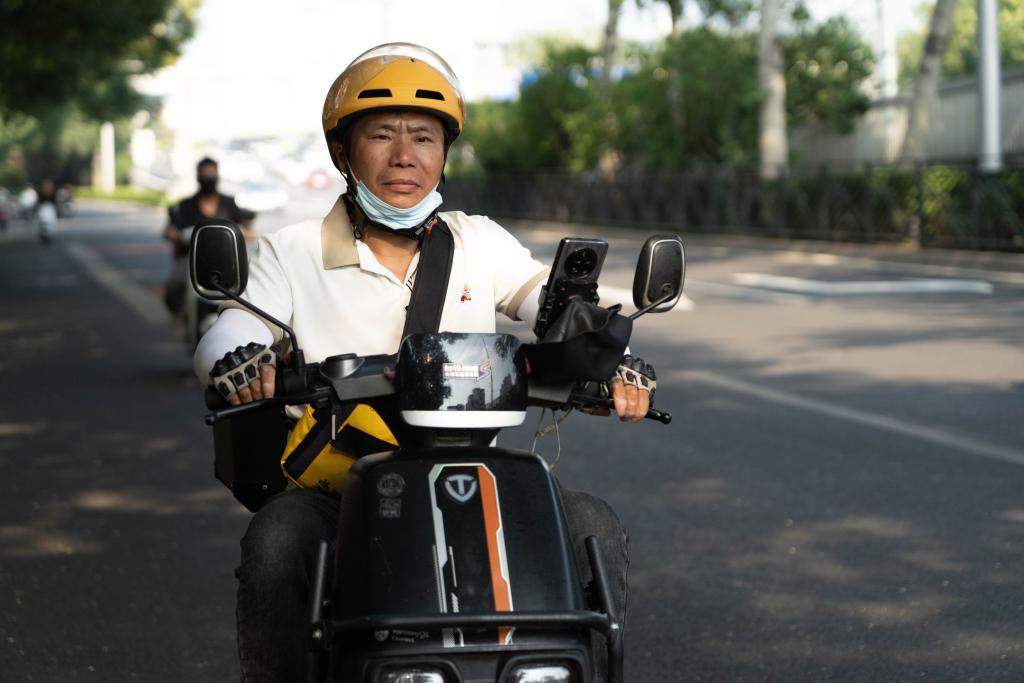 孟世祥骑行在送单路上(2025年7月22日摄)。新华社记者 张晨霖 摄