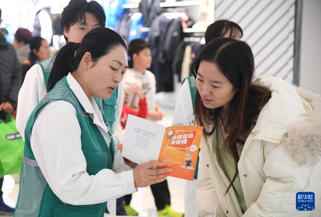 12月27日,市民(右一)在活动中的健康市集了解健身知识。