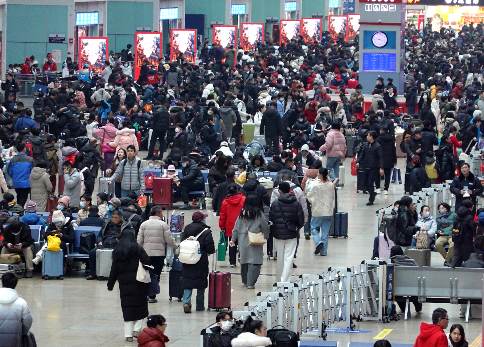 2025年春运期间,北京南站客流在工作人员引导下顺利进站乘车。