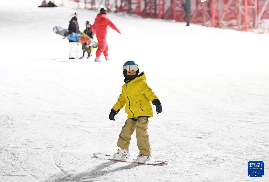 12月31日,小朋友在北京渔阳国际滑雪场滑雪迎新年。