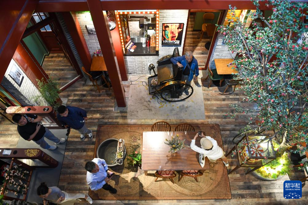 游客在位于北京市西城区的泰安里文化艺术中心内一家咖啡店参观。新华社记者 鞠焕宗 摄