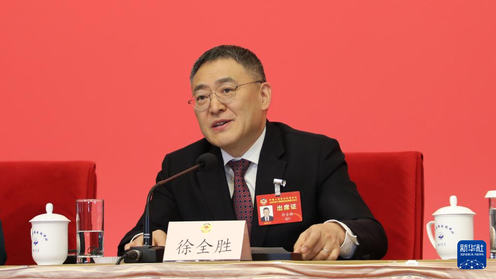 图为徐全胜委员回答记者提问。(新华社记者鲍赫 摄)