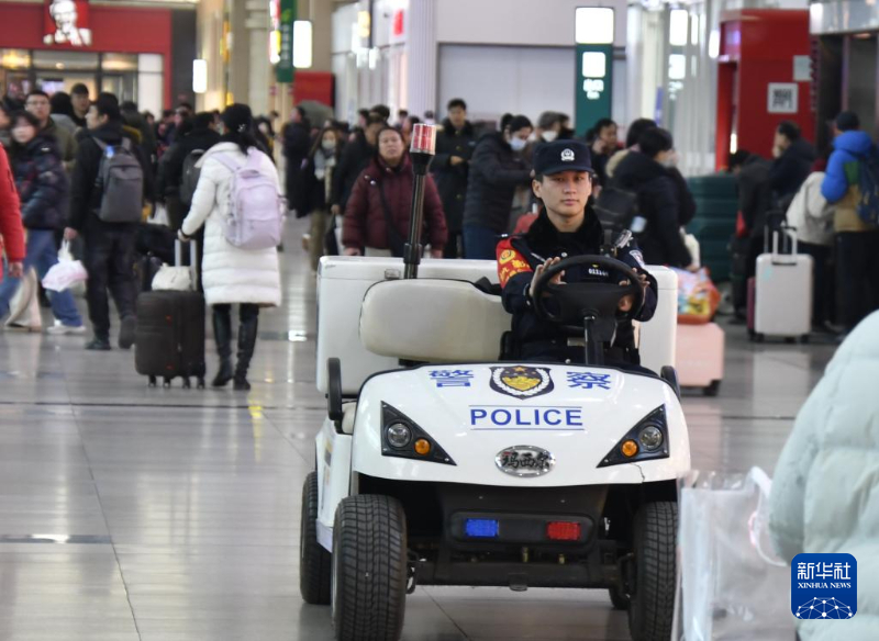 2月1日,铁路民警在北京南站内巡逻。
