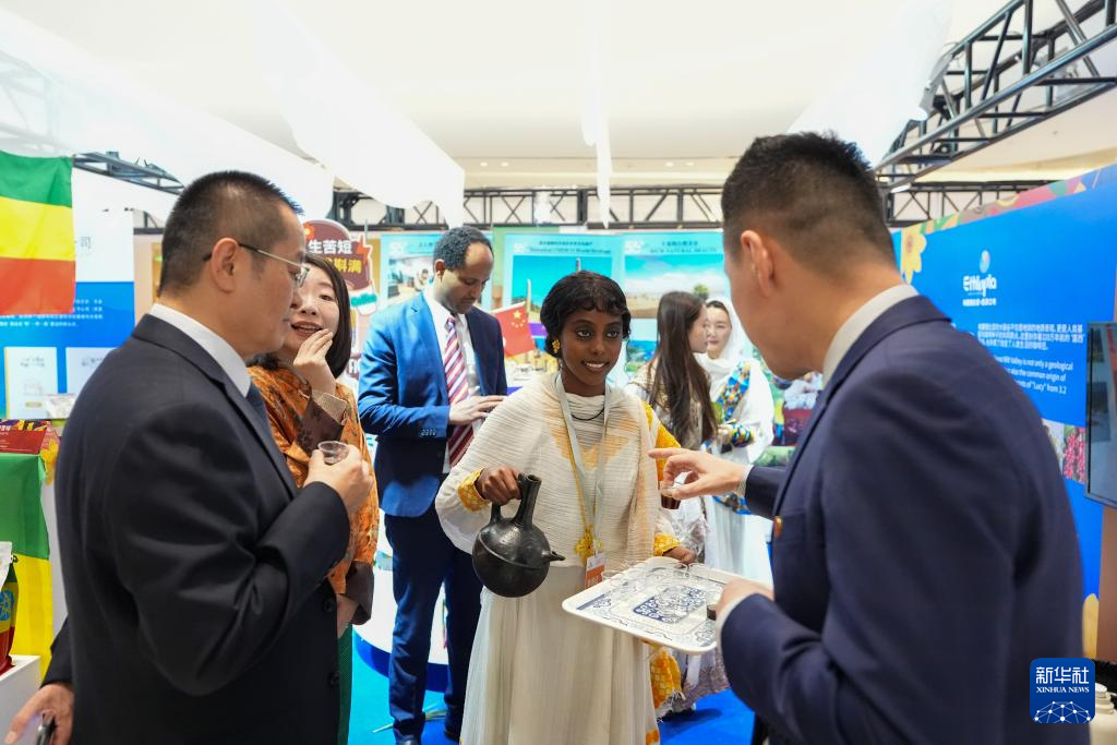 2月4日,在“共享大市场·出口中国”2026年首场活动暨北京国际精品荟的进口商品推介区,参观者在品尝展出的埃塞俄比亚咖啡。
