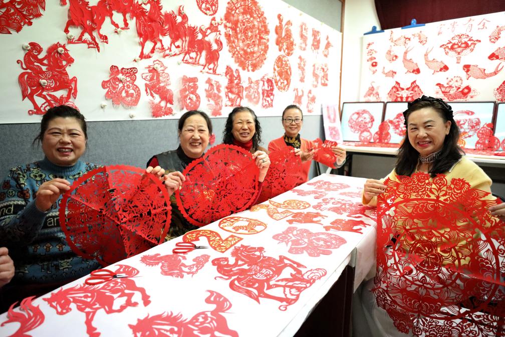 活动现场,几位剪纸爱好者合力完成一幅“万马奔腾”,十几匹骏马昂首嘶鸣,每匹马姿态各不相同。社区居民李阿姨说:“马象征着奋发向上,我们也想借这幅作品表达新年对祖国的祝福。”