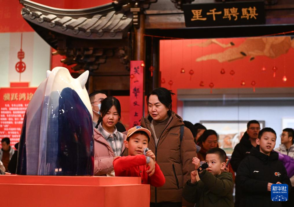 2月15日,小朋友一边吃“糖马”,一边参观“过年——丙午春节系列主题展”。