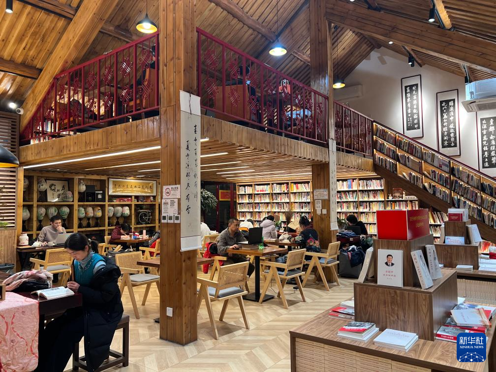 2月3日深夜,宣南书店(法源寺店)里正在阅读、学习和工作的顾客。新华社记者 宋依黛 摄