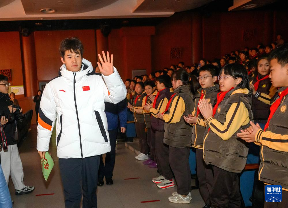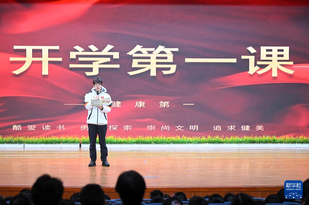 3月2日,北京第二实验小学以“勤励智耕 对己负责”为主题,举行新学期开学典礼。奥运冠军潘展乐受邀走进校园,带来“身心健康”为主题的开学第一课。