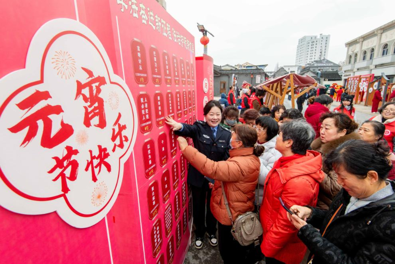 3月2日,在江苏省泰州市海陵区八字社区,居民参加海陵区司法局组织的元宵节“法治灯谜”竞猜活动。新华社发(杨玉岗摄)
