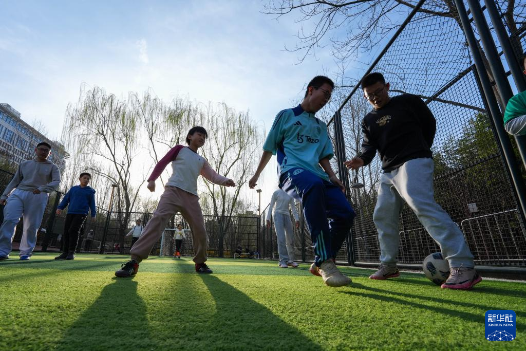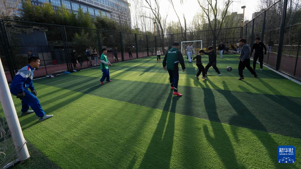 3月23日,北京大学附属小学肖家河分校的学生在北京市海淀区“肖家河·绿动天地”足球场参加课后足球兴趣社团。