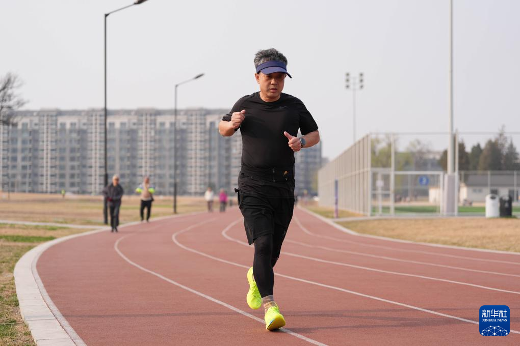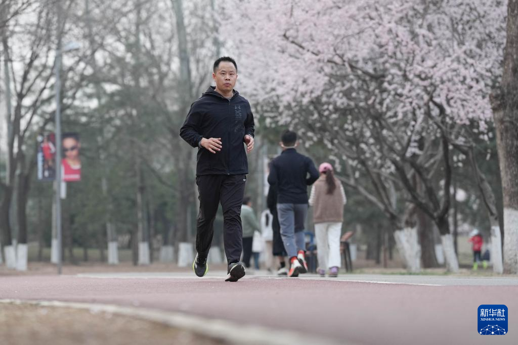 3月23日,市民在北京市海淀区“肖家河·绿动天地”跑道跑步。