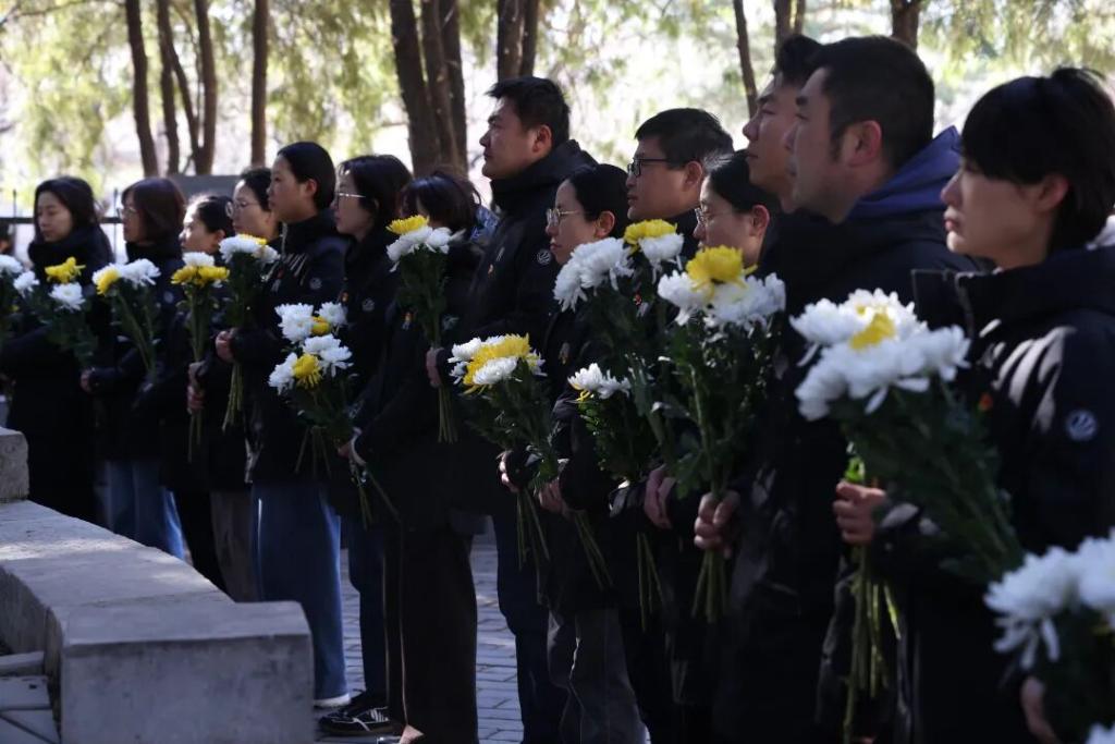 4月1日清华附中志新学校师生代表前往公墓祭扫。新华社发