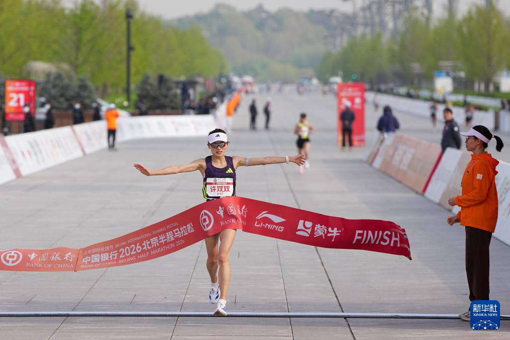 4月12日,中国选手许双双冲过终点,她以1小时9分54秒的成绩获得女子冠军。