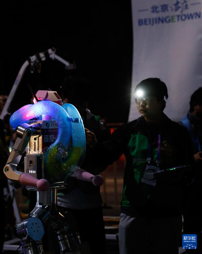 4月12日凌晨,操作人员在调试一台参加全要素测试的机器人。新华社发(翟一凡摄)
