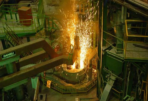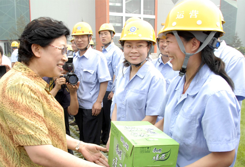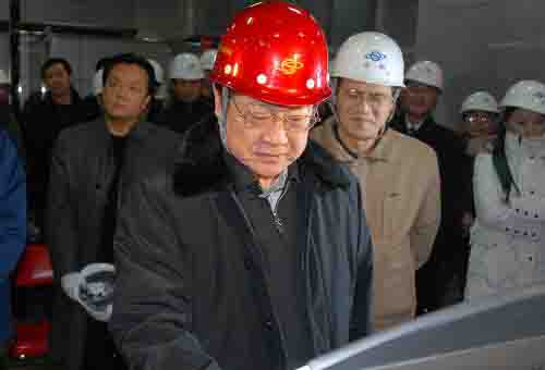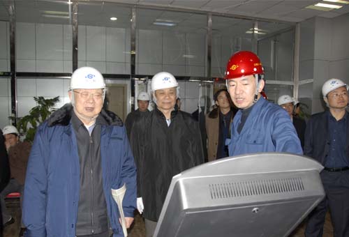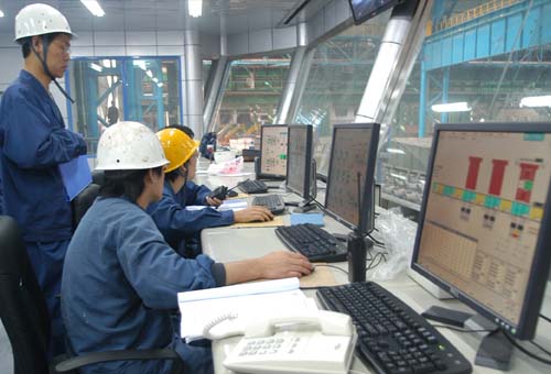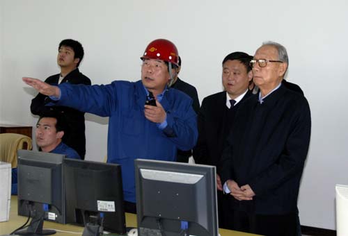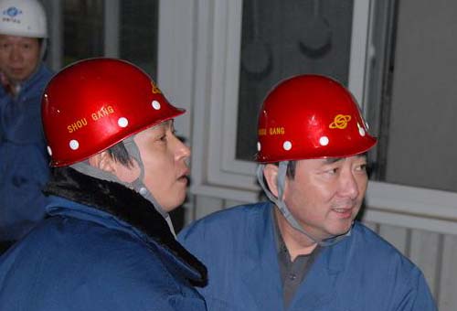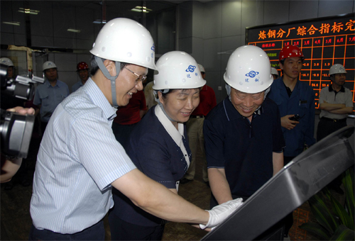 首钢总公司党委书记、董事长朱继民在炼钢车间了解生产情况