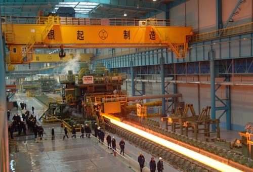 河北省委书记白克明、省长郭庚茂为迁钢第一卷热卷板揭幕