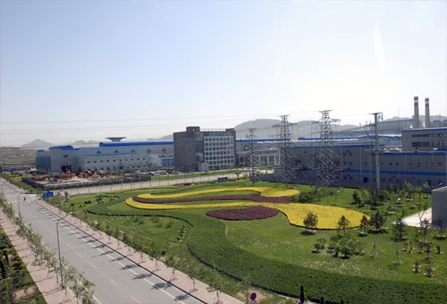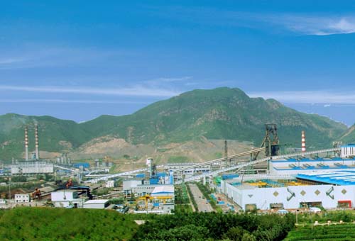蓝天白云下的迁钢公司舒展出雄伟壮观的美丽的画卷