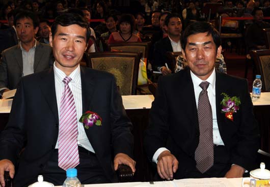 北京丰台区南苑乡党委书记陈重才与北京大红门服装节大会组委会总指挥刘郦现场交流