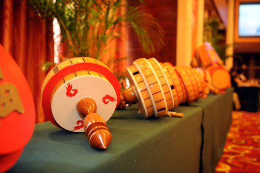 “空竹文化与人文北京”论坛现场摆设的空竹
