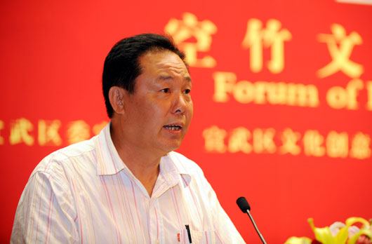 天津市空竹协会会长李全利在论坛上发言