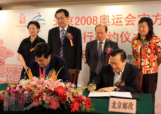 北京市邮政公司总经理章干泉与京报集团社长梅宁华签约