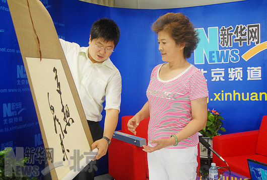 新华社北京新闻信息中心副主任王文韬向著名演员宋春丽赠送嘉宾礼物